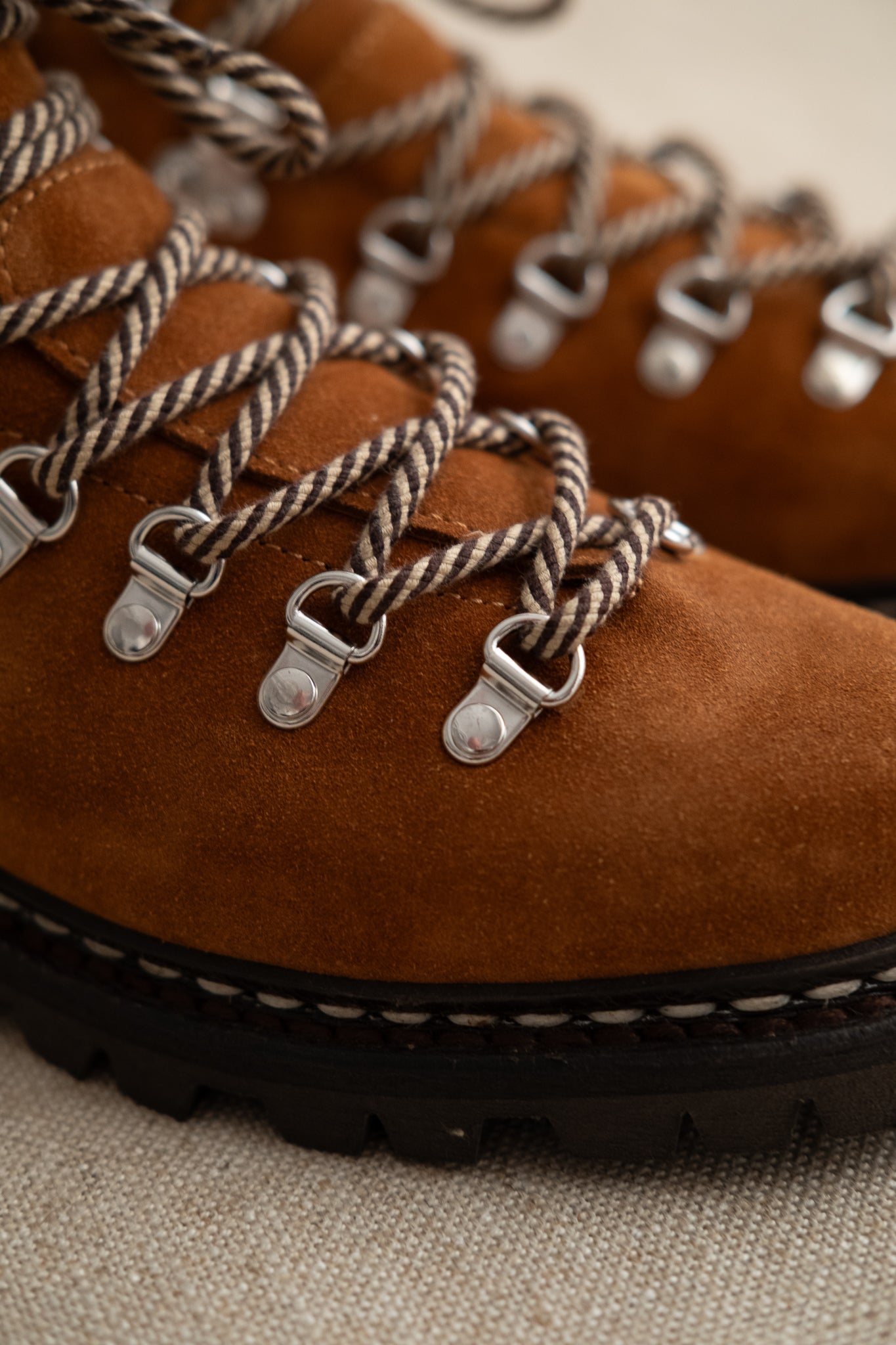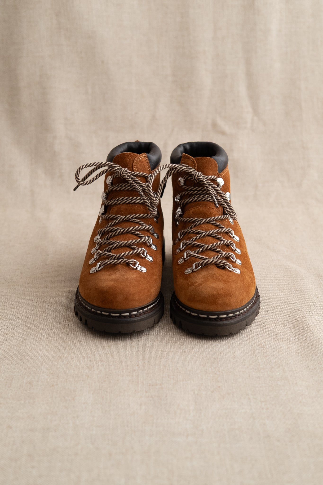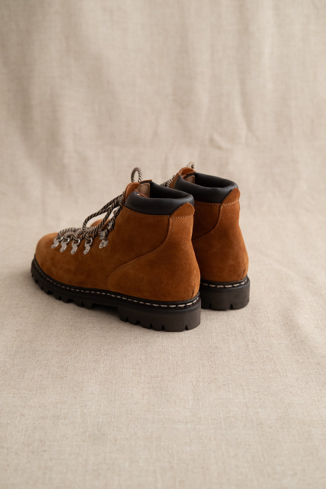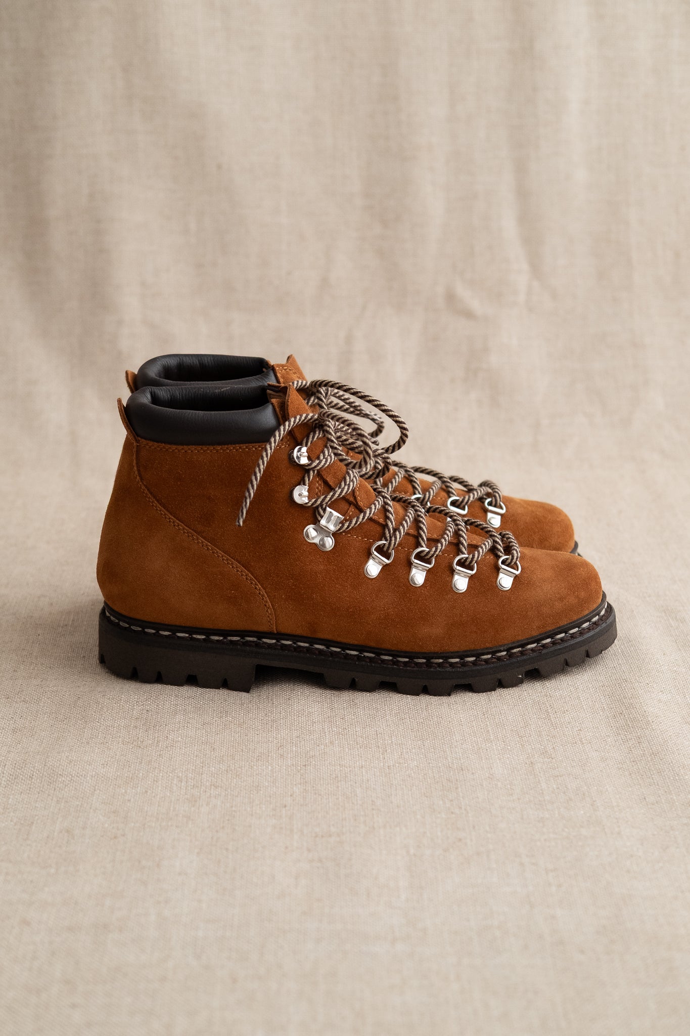 A beautiful yet functional derby/hiking hybrid from Paraboot. Inspired by traditional mountaineering attire of the 60s with a modernized, dressed silhouette that features full leather lining, robust metal eyelets with rope lacing, as well as the trusted Norwegian stitching Paraboot are famous for.