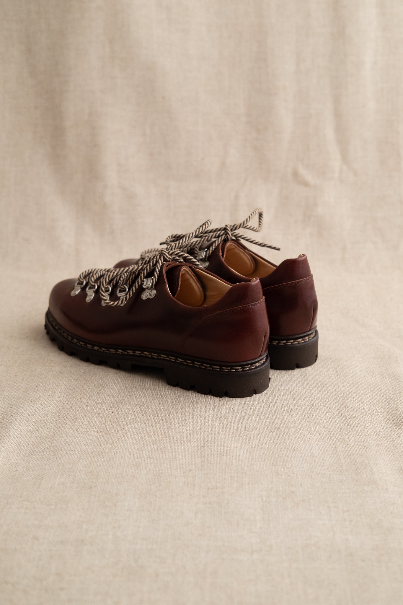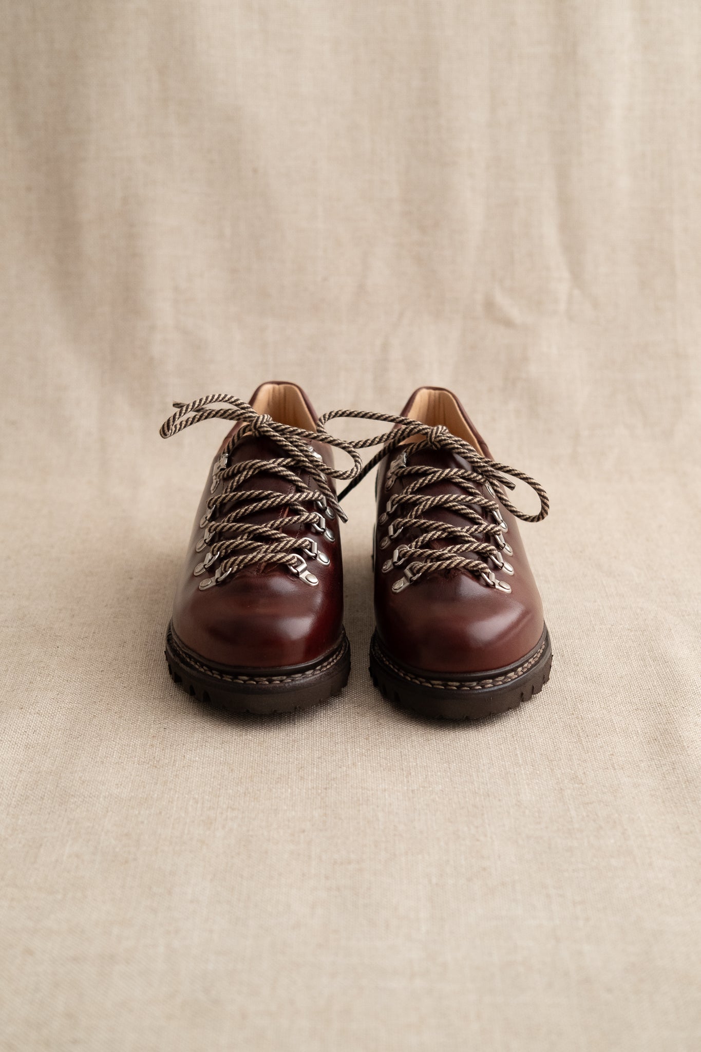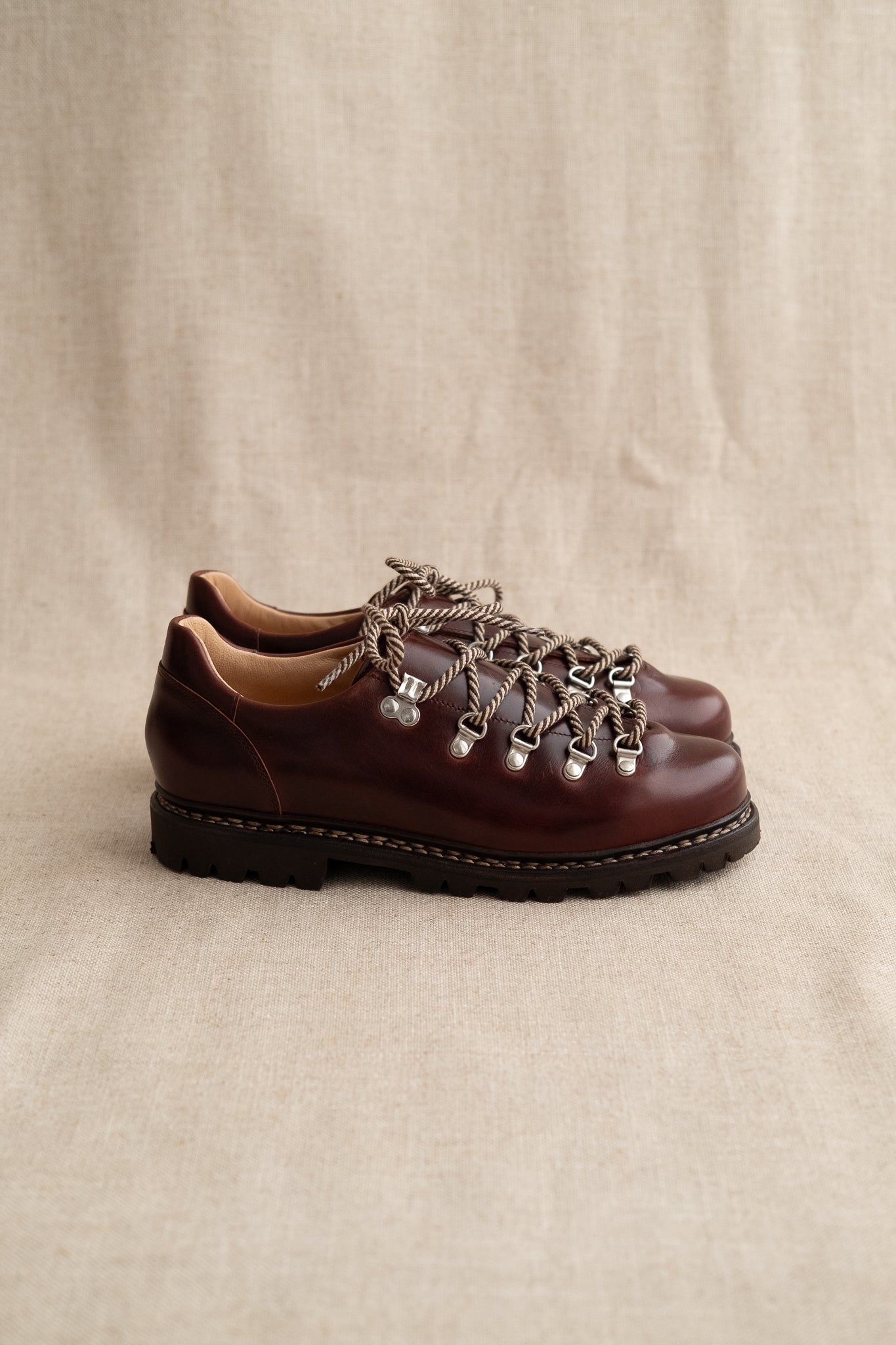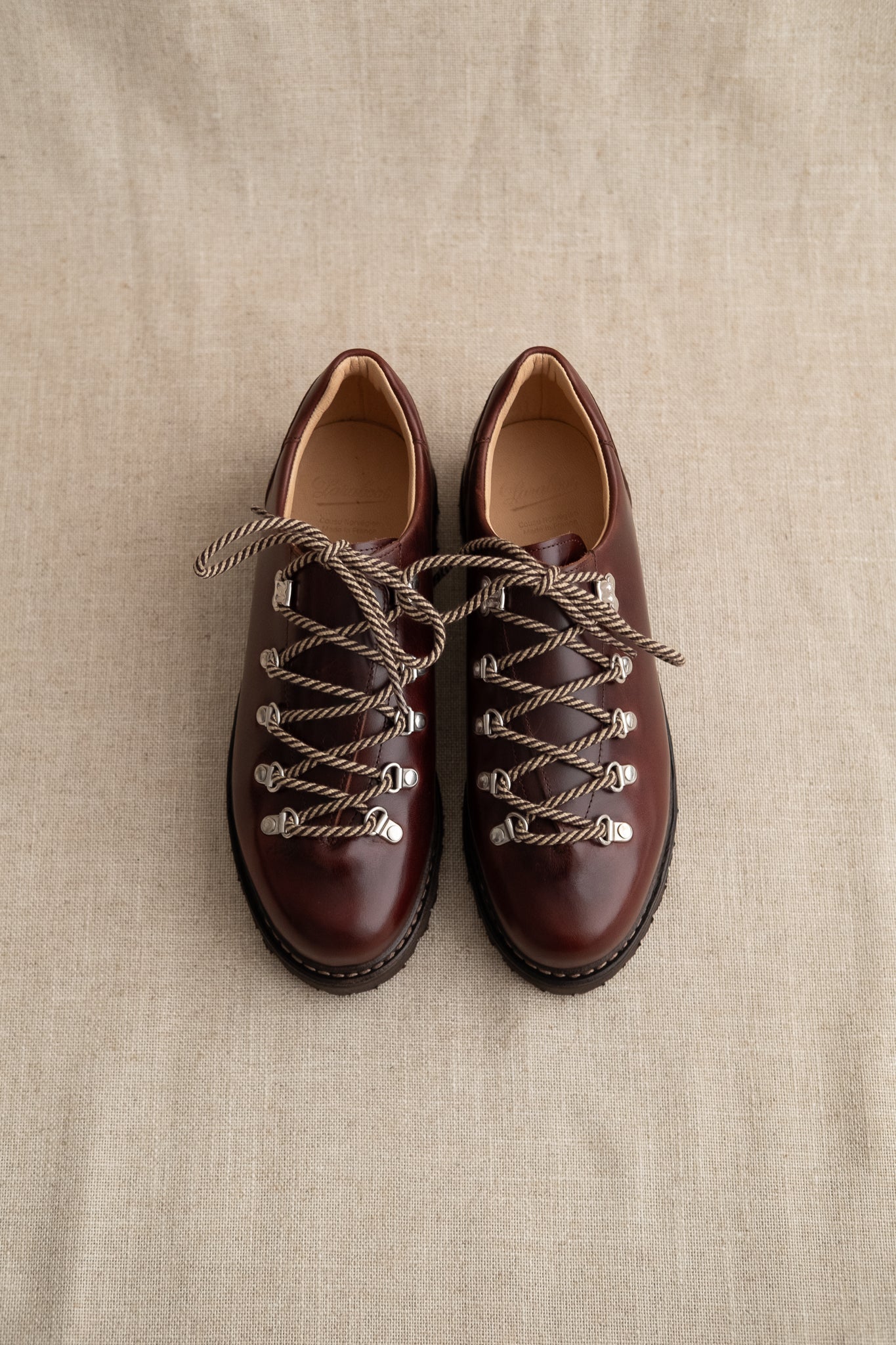 A stylish yet functional derby/hiking hybrid from Paraboot. Inspired by traditional mountaineering attire of the 60s with a modernized, dressed silhouette that features full leather lining, robust metal eyelets with rope lacing, as well as the trusted Norwegian stitching Paraboot are famous for.