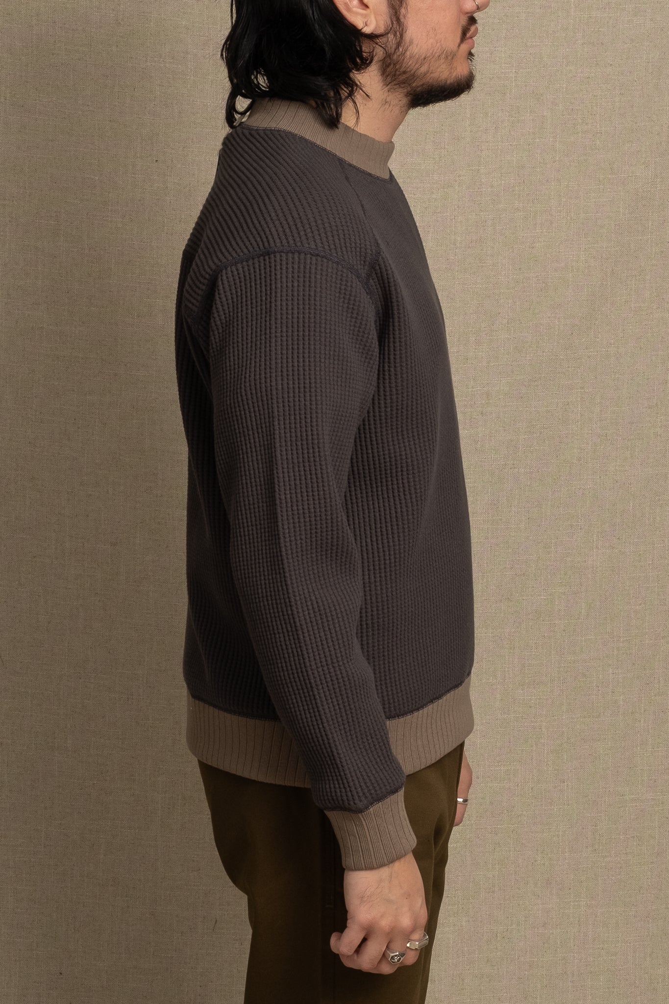 Waffle Midneck Sweater - InkBlack x Sepia