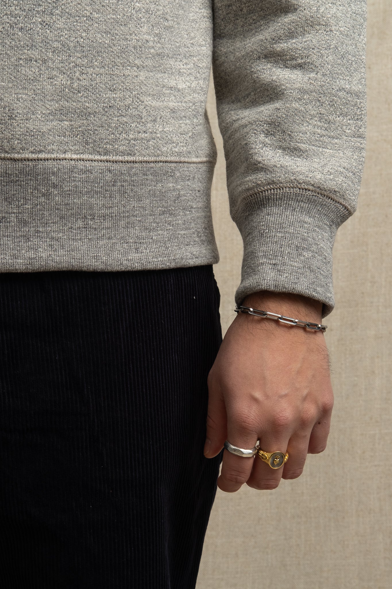 Cut from their in-house fleece fabric, GG Sweat, this unbrushed fleece is knitted on vintage machinery, giving the cloth a finish full of character, appealing to the eye and touch. Heavyweight, with chunky ribbed cuffs, hem and neckline, sewn with flat-faced seams for extra comfort and durability.