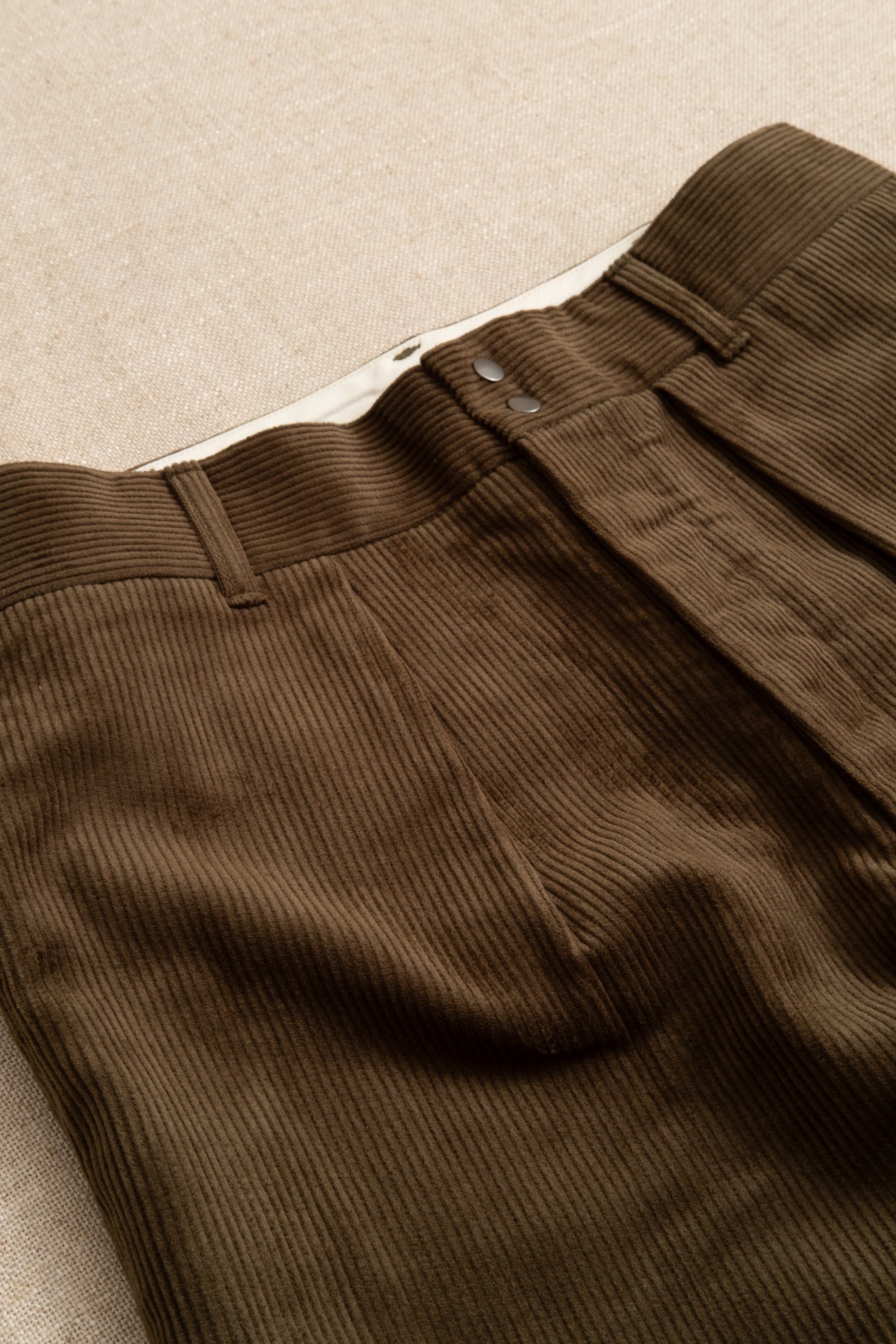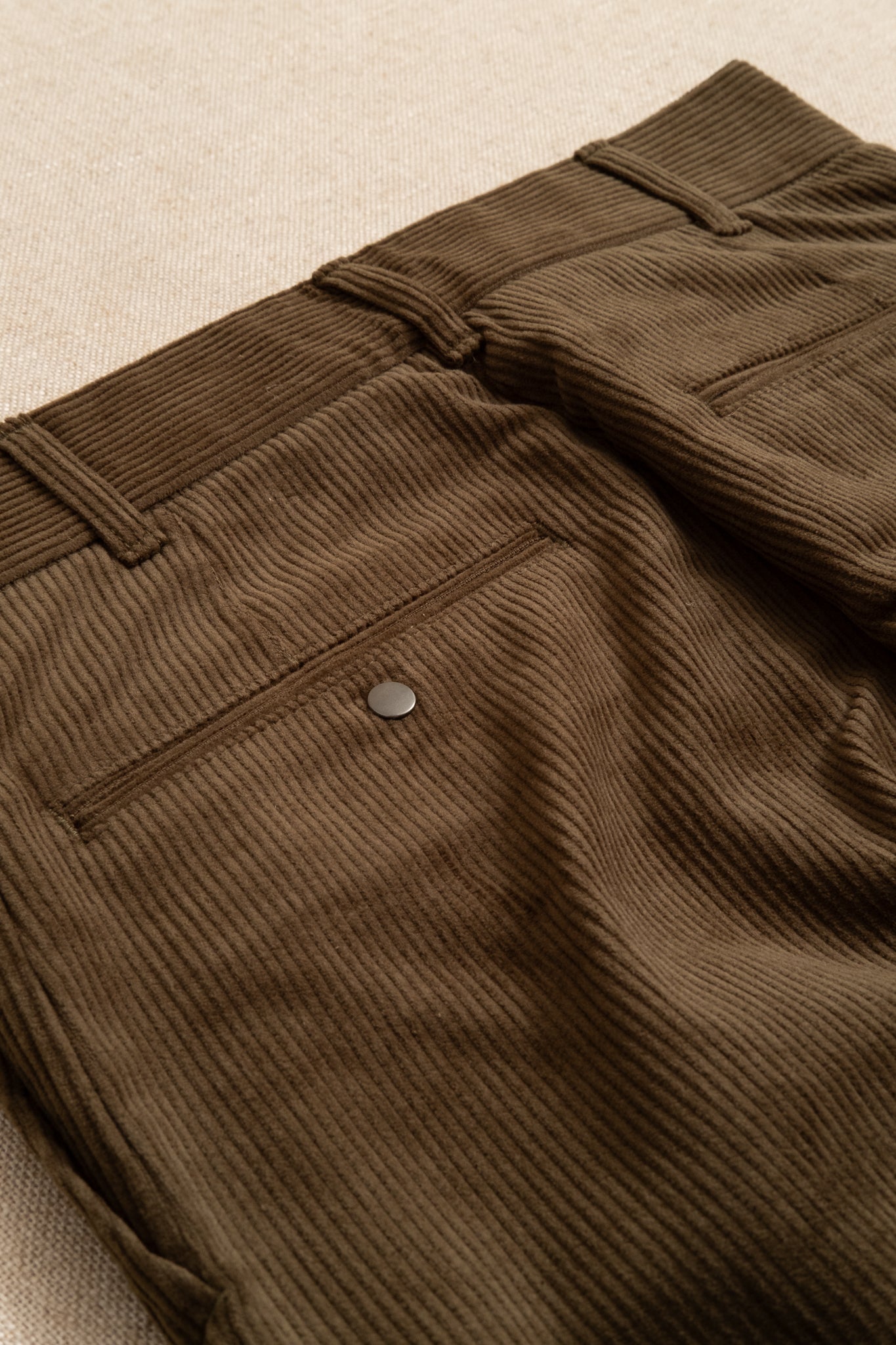 These slacks are crafted from a chunky 8W corduroy, offering a durable yet comfortable feel. The wide-leg design combines style and ease of movement with, snap button fastening. The silhouette comes together and drapes nicely w to create a fashionable and practical addition to your wardrobe.